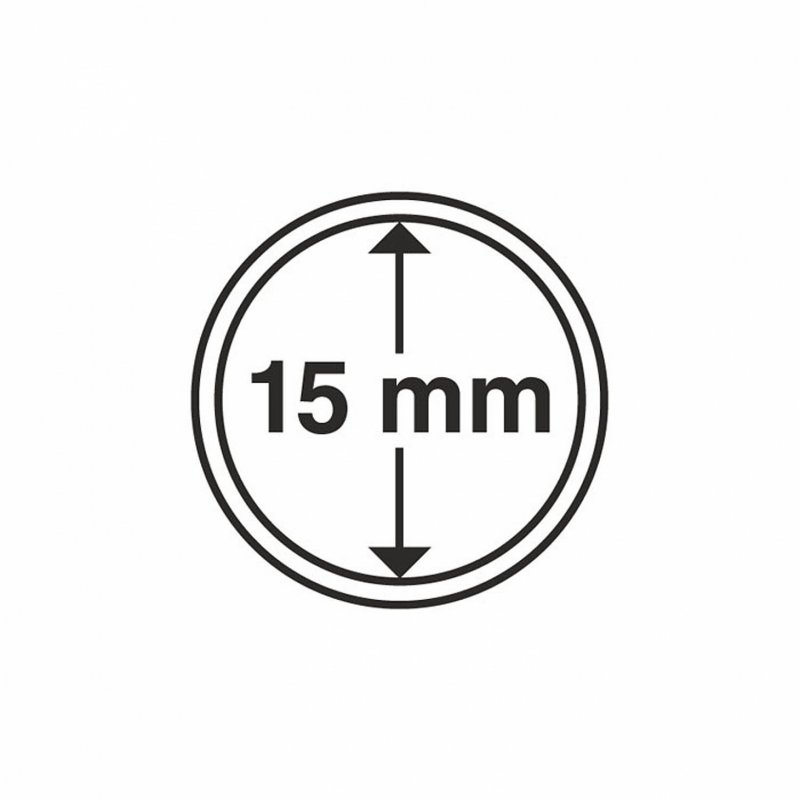 LEUCHTTURM. Круглые капсулы для монет CAPS (с бортиком), внутренний диаметр 15 мм. Упаковка 10 штук. Арт. 327665
